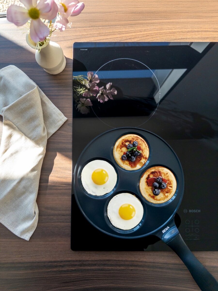 Start dagen med perfekt stekte pannekaker eller speilegg - hver eneste gang! Med denne smarte pannekakepannen (blinipanne) kan du steke fire pannekaker samtidig, jevnt og effektivt. Perfekt for travle morgener, helgefrokost med familien eller når du bare vil gjøre litt ekstra stas på måltidet.