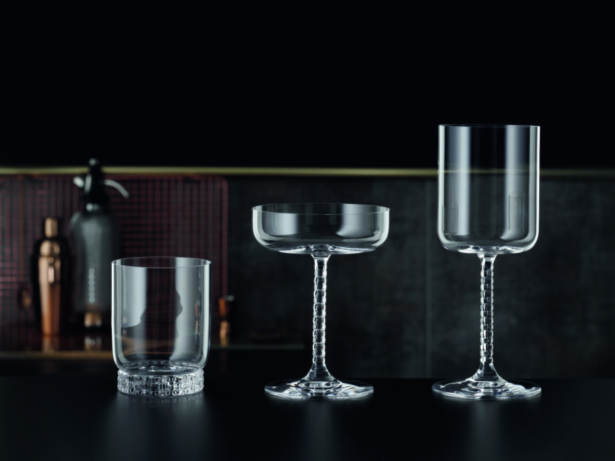 Server drinker med stil med elegante cocktailglass i krystall fra NACHTMANN Bossa Nova. Den moderne, sylindriske formen fremhever både klassiske cocktailer og moderne aperitiffer, samtidig som den gir borddekkingen et eksklusivt preg.