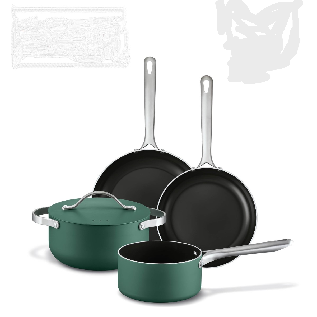 Dette er det bokstavelig talt grønne alternativet for deg som vil lage god mat med god samvittighet. Settet er laget av 100 % resirkulert aluminium og er helt fri for PFAS – et tryggere valg for både deg og miljøet.