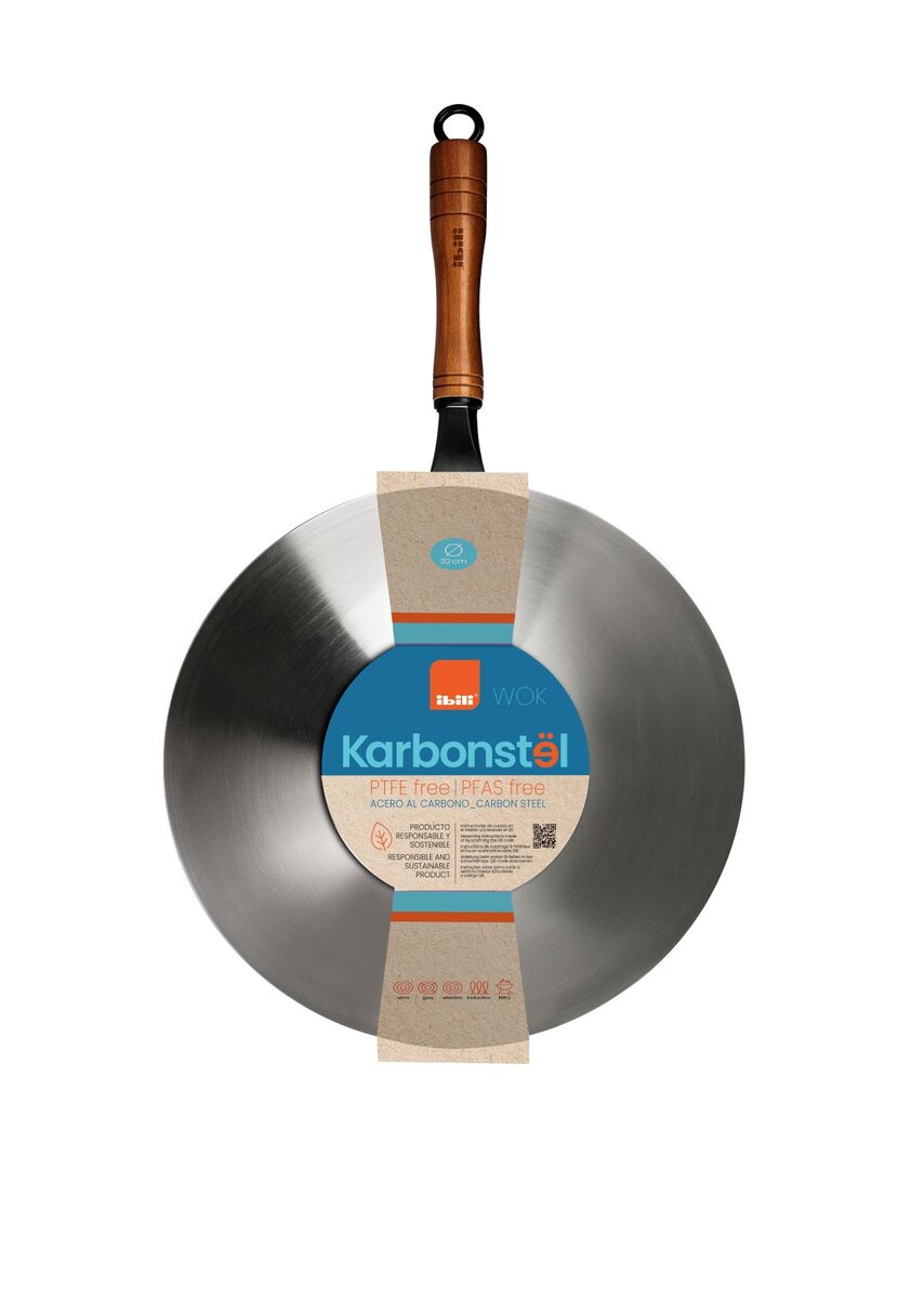 Woken er laget av 99 % jern og 1 % karbon, helt uten non-stick belegg. Den er 100 % fri for PTFE og PFAS, slik at du kan lage mat på en trygg og naturlig måte.